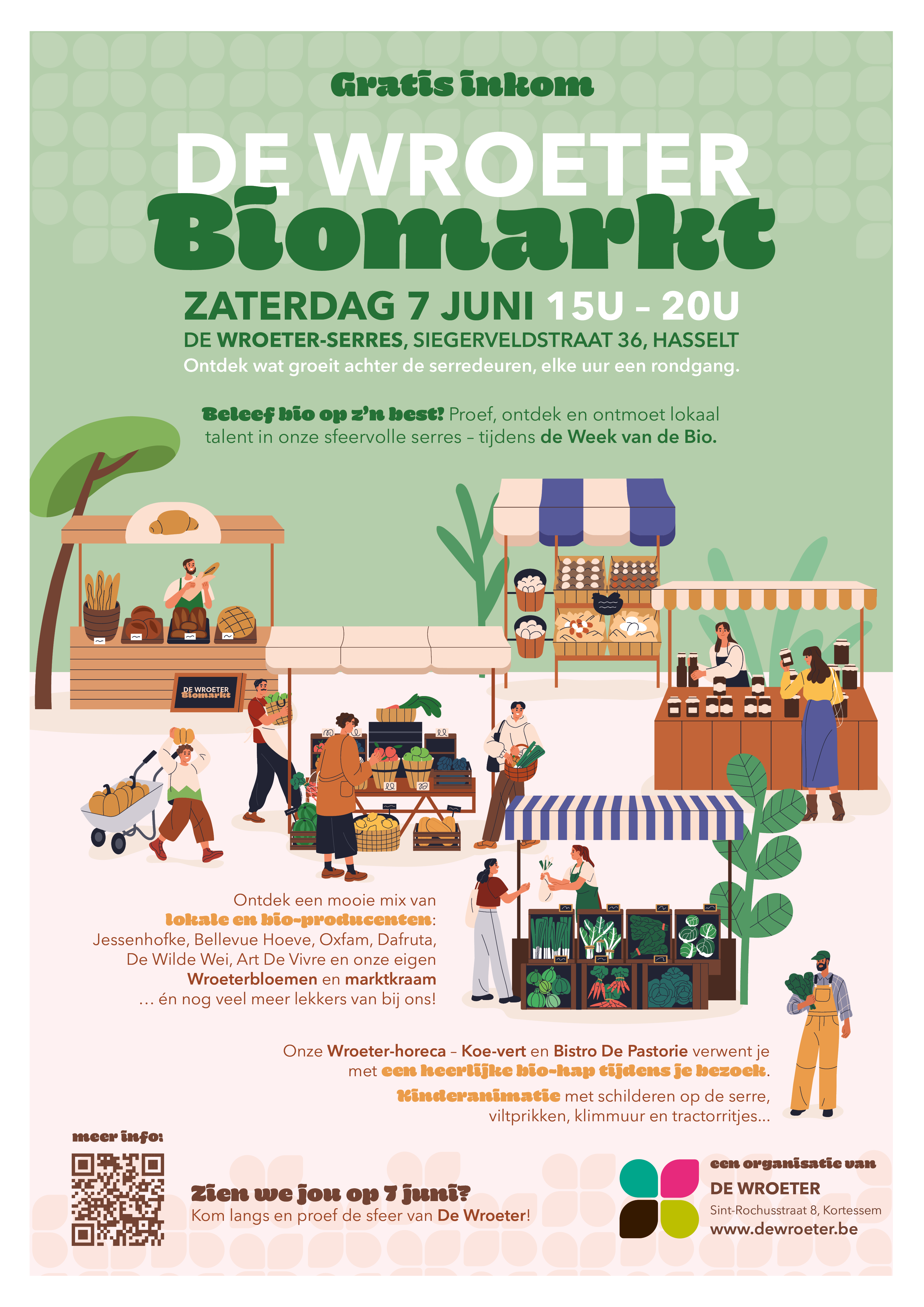 Kom langs op de gezelligste biomarkt van het jaar en proef waarom bio bij De Wroeter geen trend is, maar een engagement. 💚